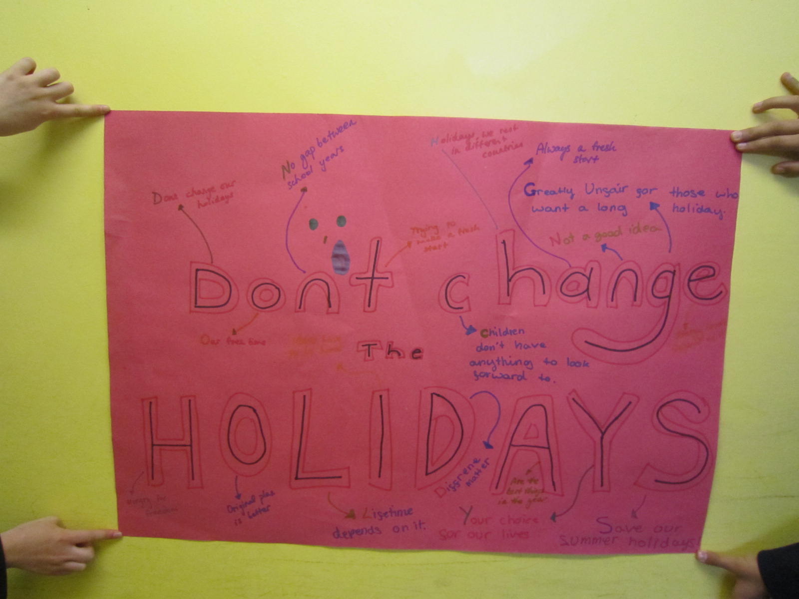 It’s also worth pointing out that 80% of our children are not living in poverty. Are you saying that they too should be staying at school longer, despite the fact that they all want to keep the summer holidays as they are? Indeed, when I discussed the issue with my pupils – rich and poor – they were so incensed by the notion that their freedom would be curtailed that they made some “protest” posters in response, saying things such as they would have nothing to look forward to during term-time and that shorter holidays would make them unhappier.